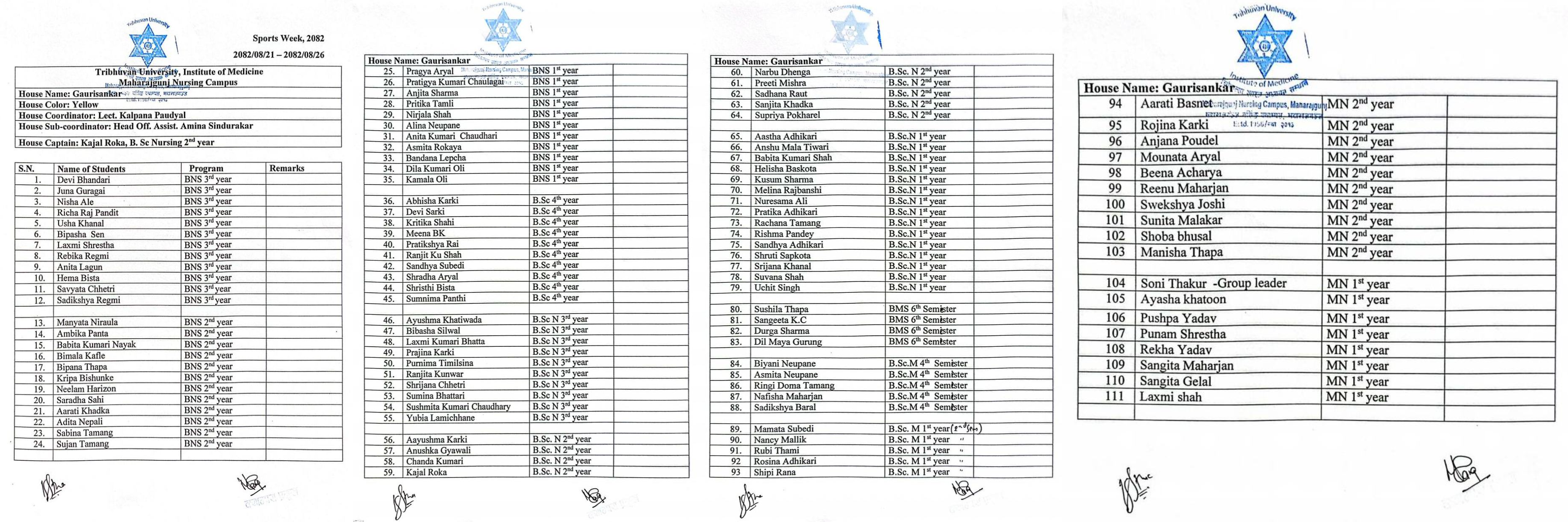 Routine of the B.Sc.Midwifery (BScM) 3rd Semester...