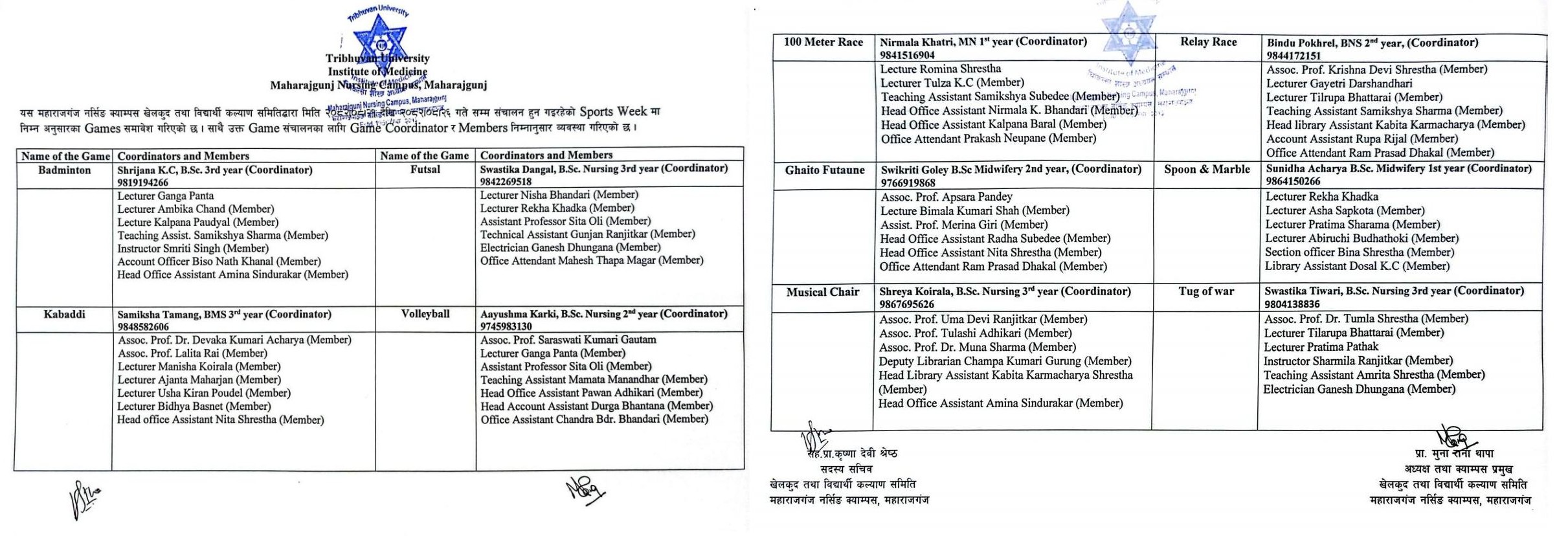 Sports Week Game Coordinator and Members 2082