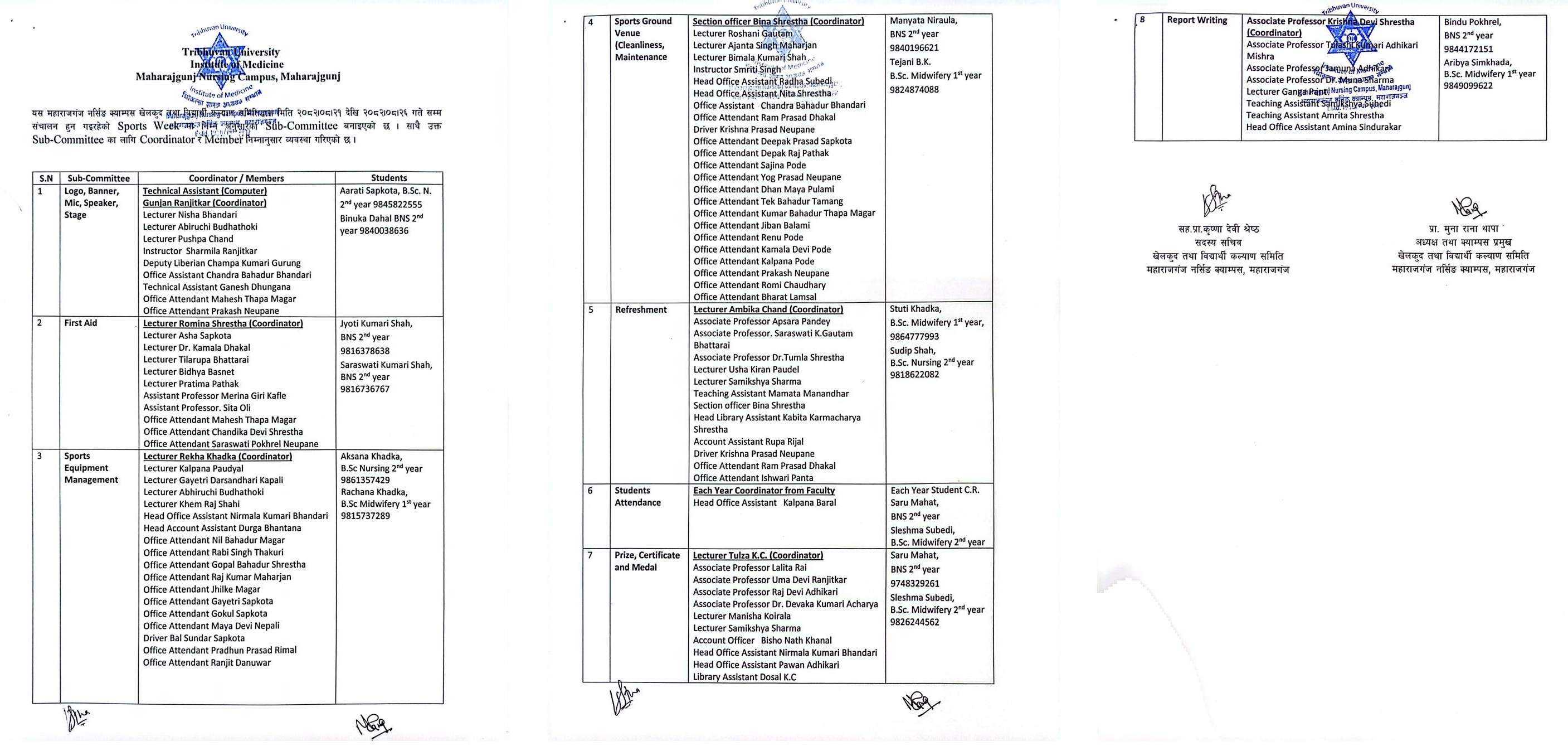 Sports Week Sub- Committee Coordinator and Members 2082