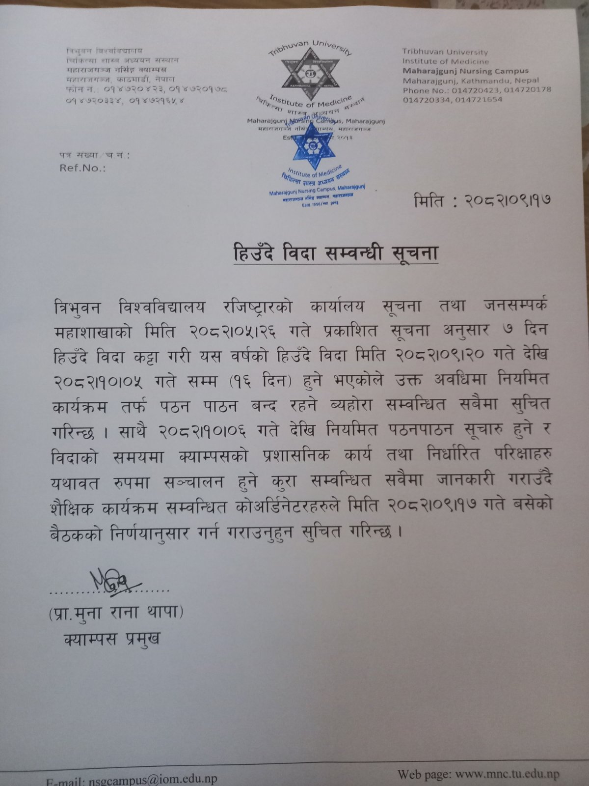 Notice of BNS, B.Sc. Nursing & B.Sc.M, Wrap-Up Matching MEC Seat Vacant Admission Notice 2082