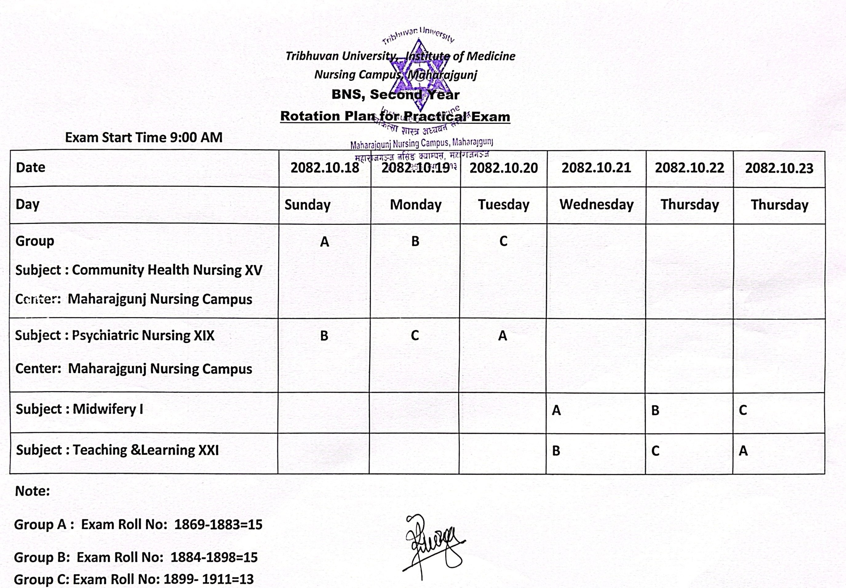 Routine of the B.Sc.Midwifery (BScM) 3rd Semester...