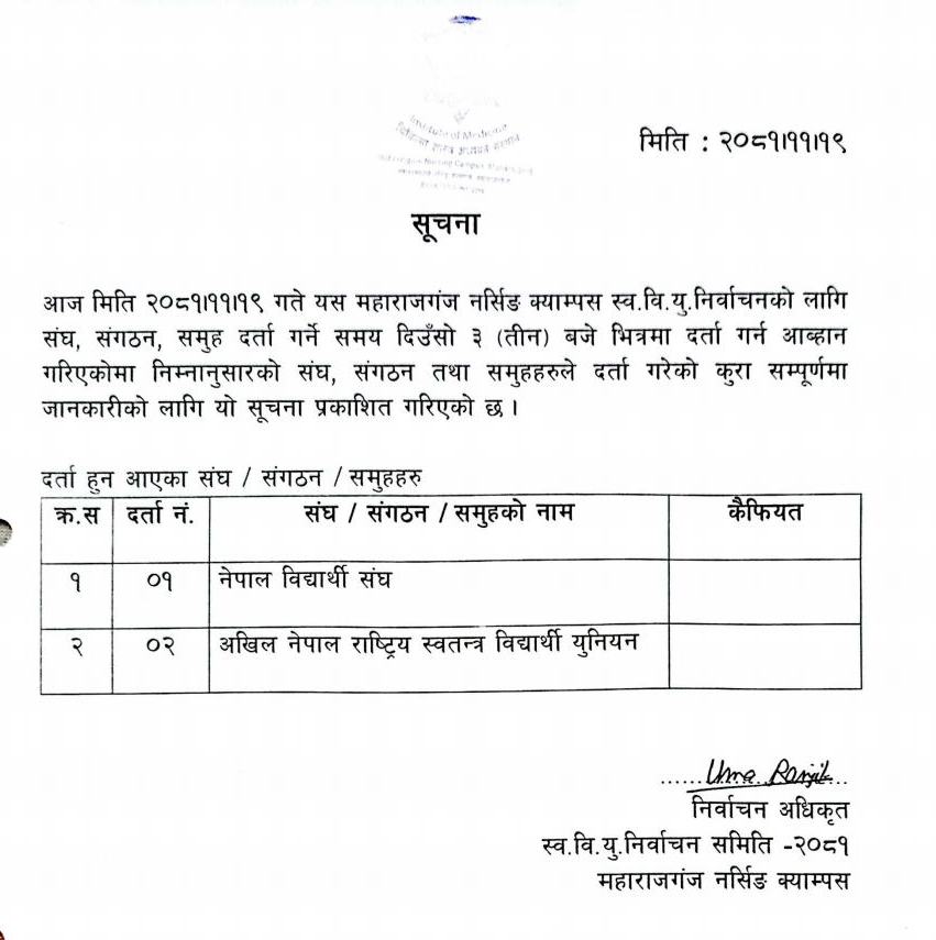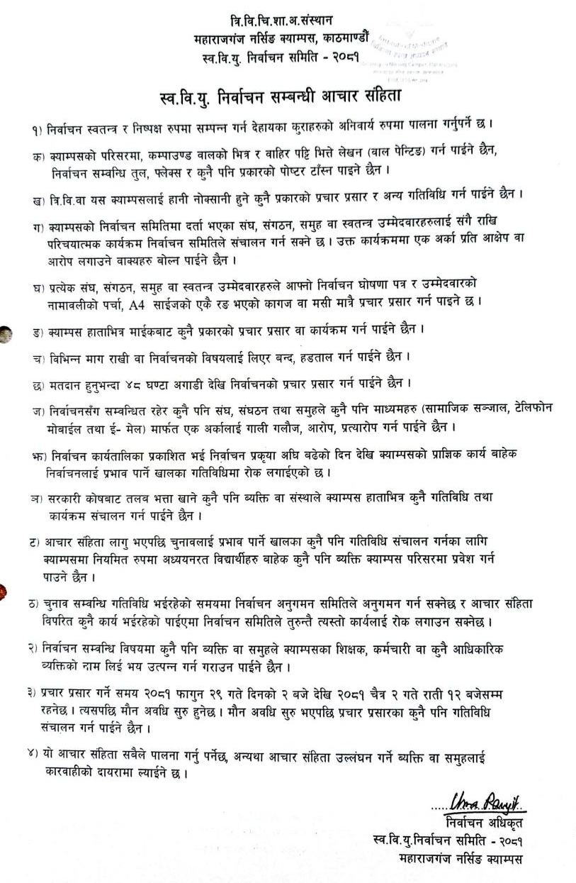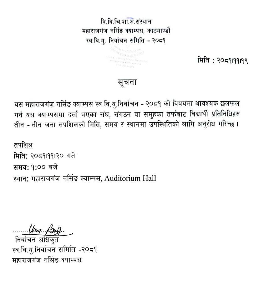 FSU Election 2081 Notice; स्व. वि. यु. निर्वाचन २०८१ को लागि नाम दर्ता सम्बन्धि सूचना, स्व. वि. यु. निर्वाचन २०८१ सम्बन्धि आचार संहिता, दर्ता हुन आएका संघ, संगठन, समुहको सूचना, स्व. वि. यु. निर्वाचन २०८१ सम्बन्धि अवश्यक छलफलको सूचना