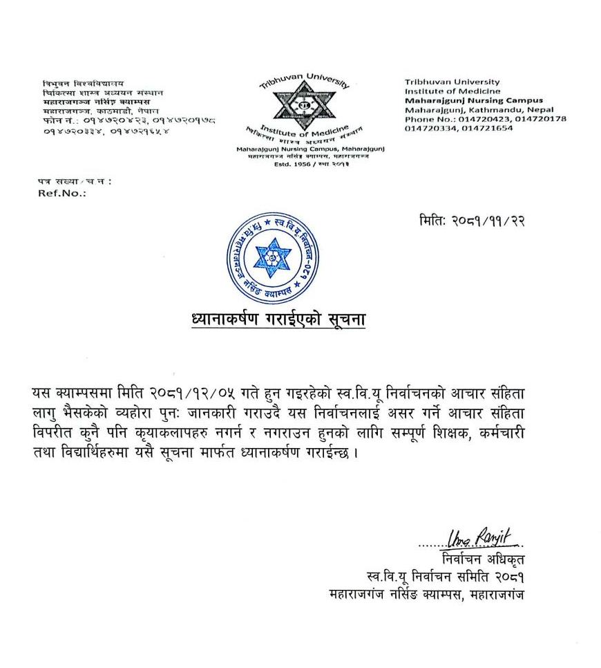 Notice of BNS, B.Sc. Nursing & B.Sc.M, Wrap-Up Matching MEC Seat Vacant Admission Notice 2082