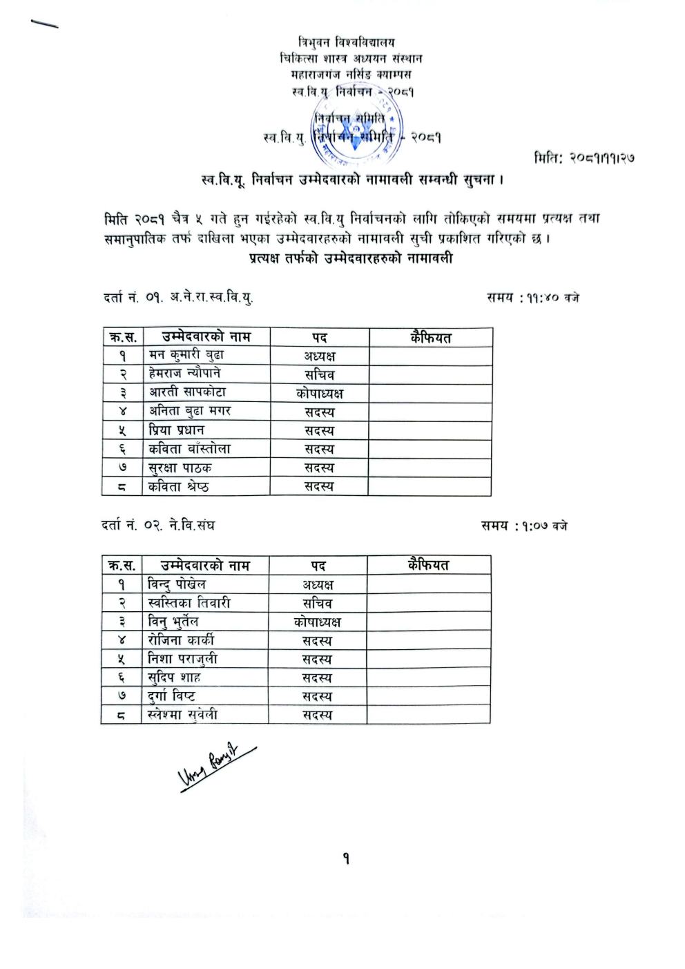 Notice of BNS, B.Sc. Nursing & B.Sc.M, Wrap-Up Matching MEC Seat Vacant Admission Notice 2082