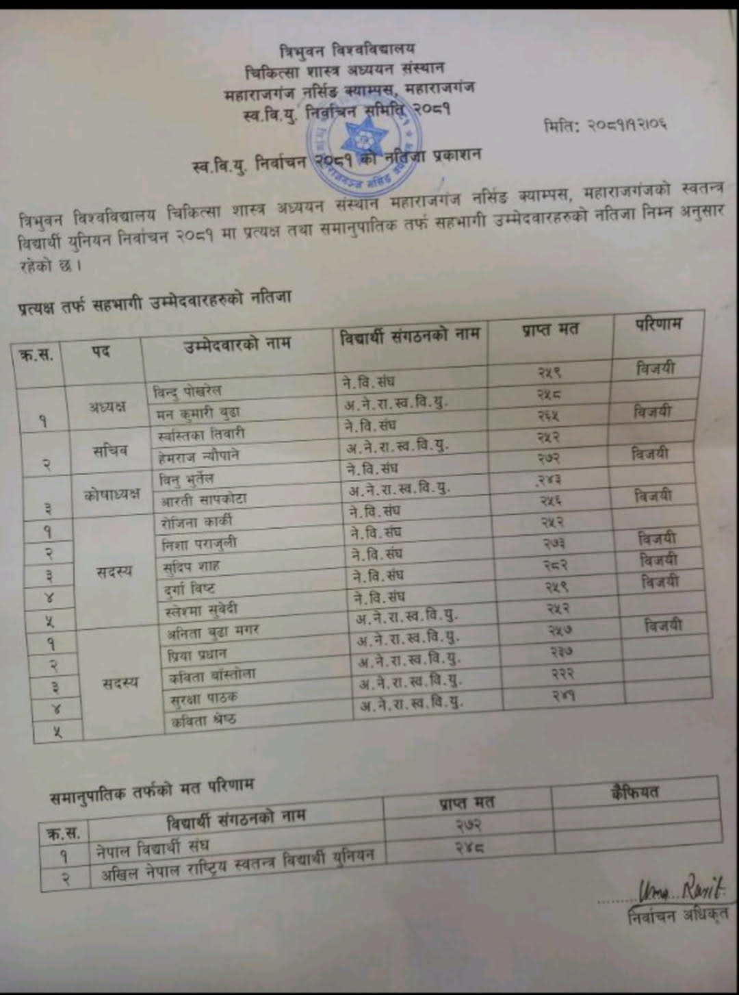 Result of FSU Election, 2081