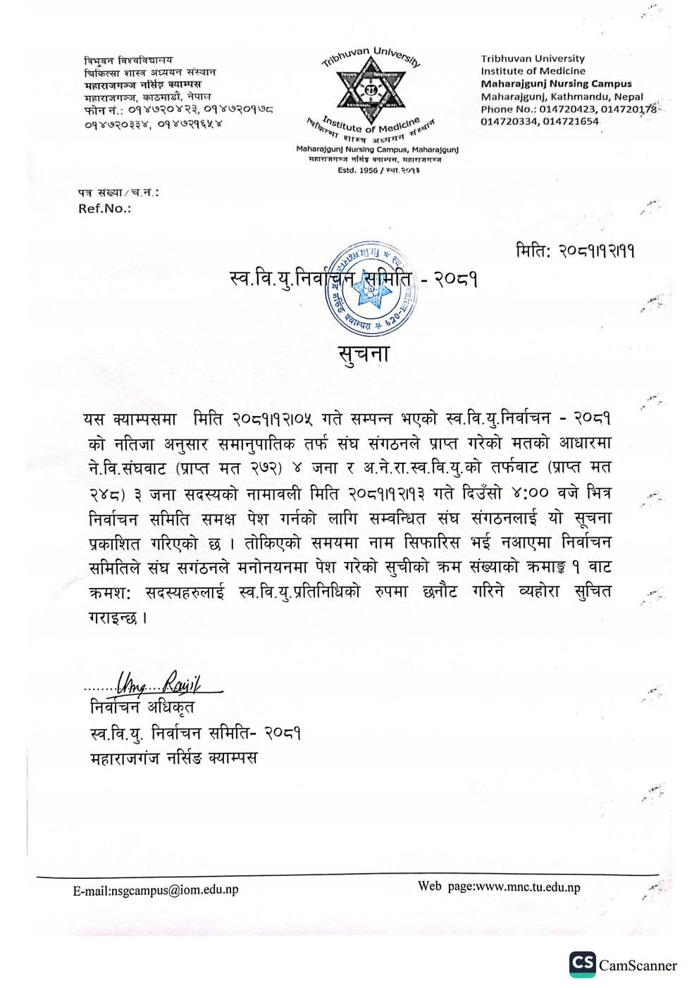 Notice of BNS, B.Sc. Nursing & B.Sc.M, Wrap-Up Matching MEC Seat Vacant Admission Notice 2082