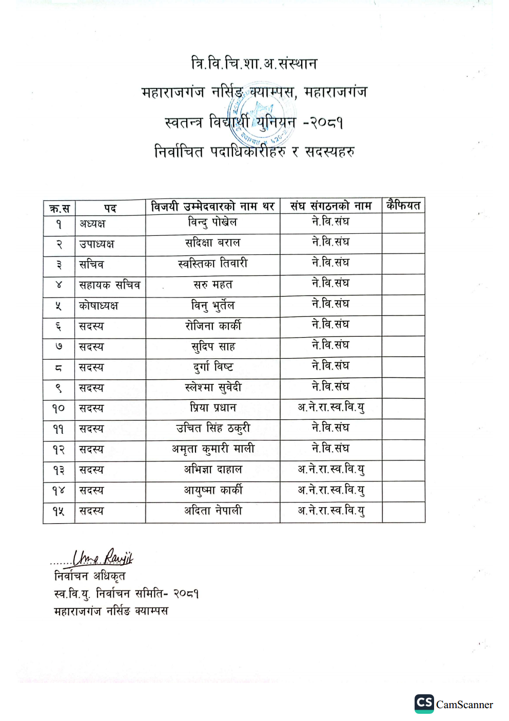 FSU elected members name list 2081- 12-13