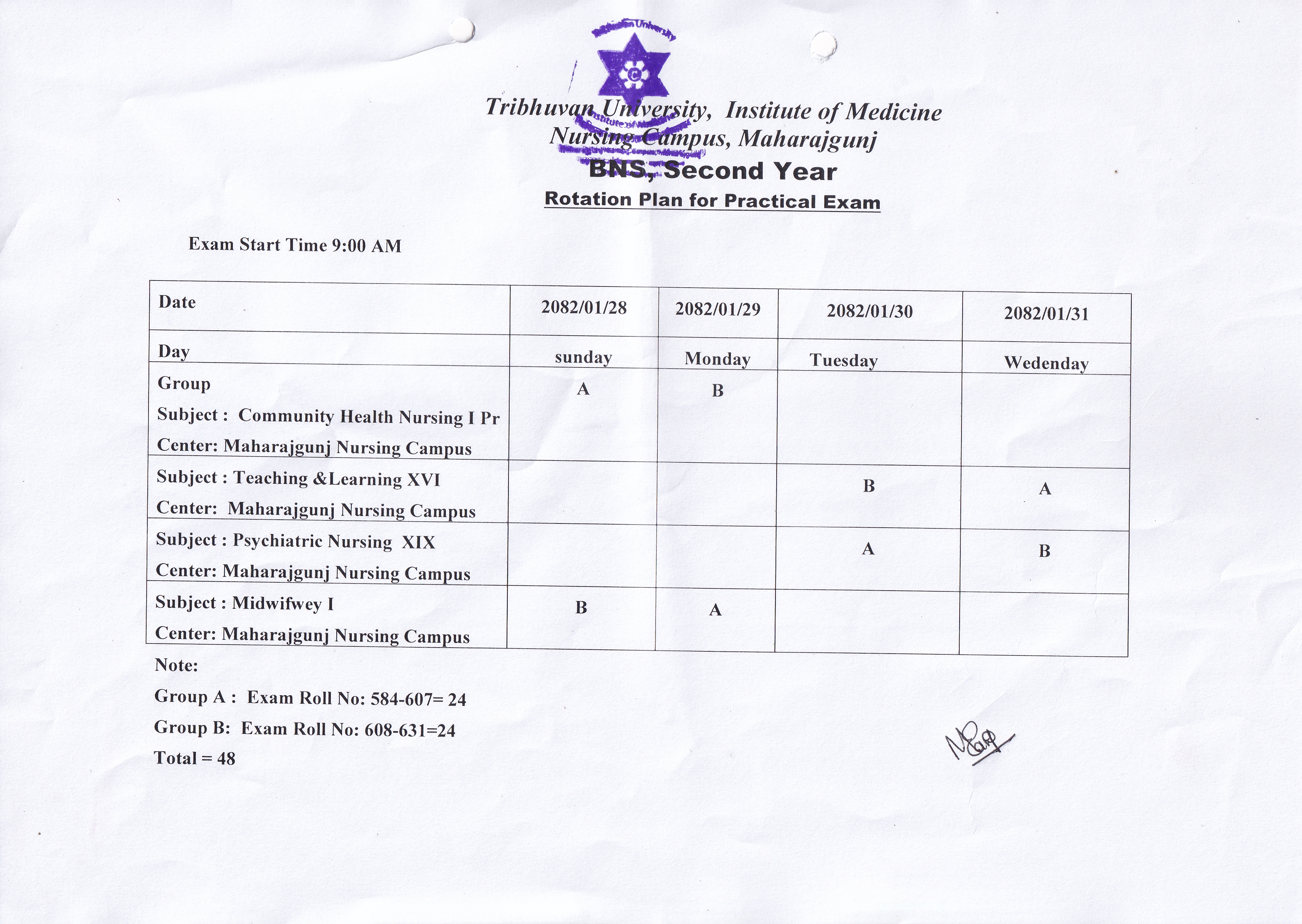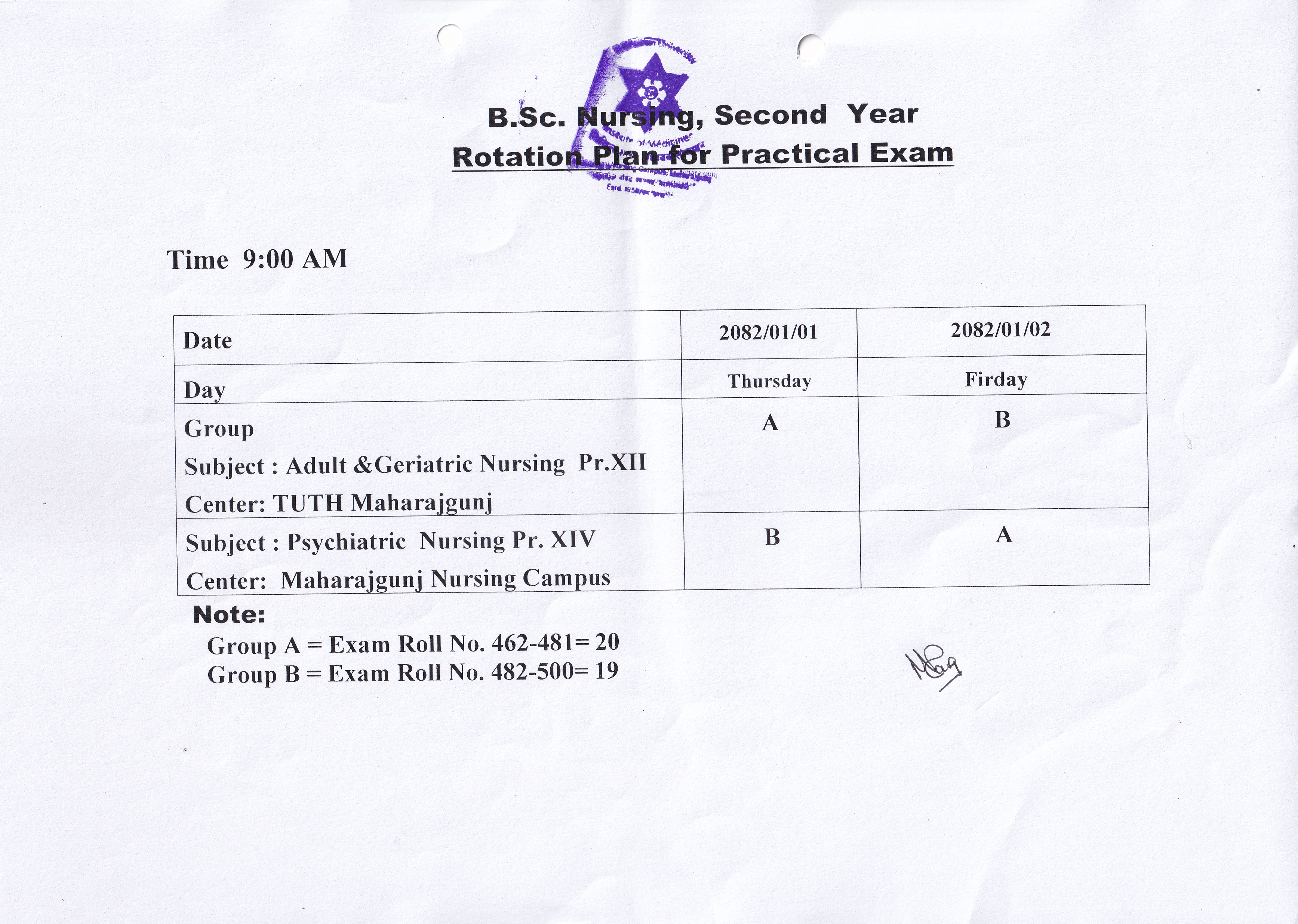 Routine of the B.Sc.Midwifery (BScM) 3rd Semester...