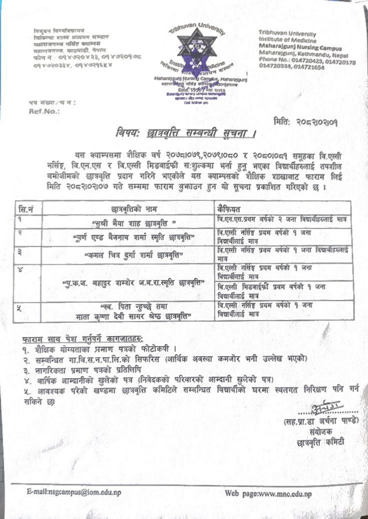 Notice regarding scholarship 2082