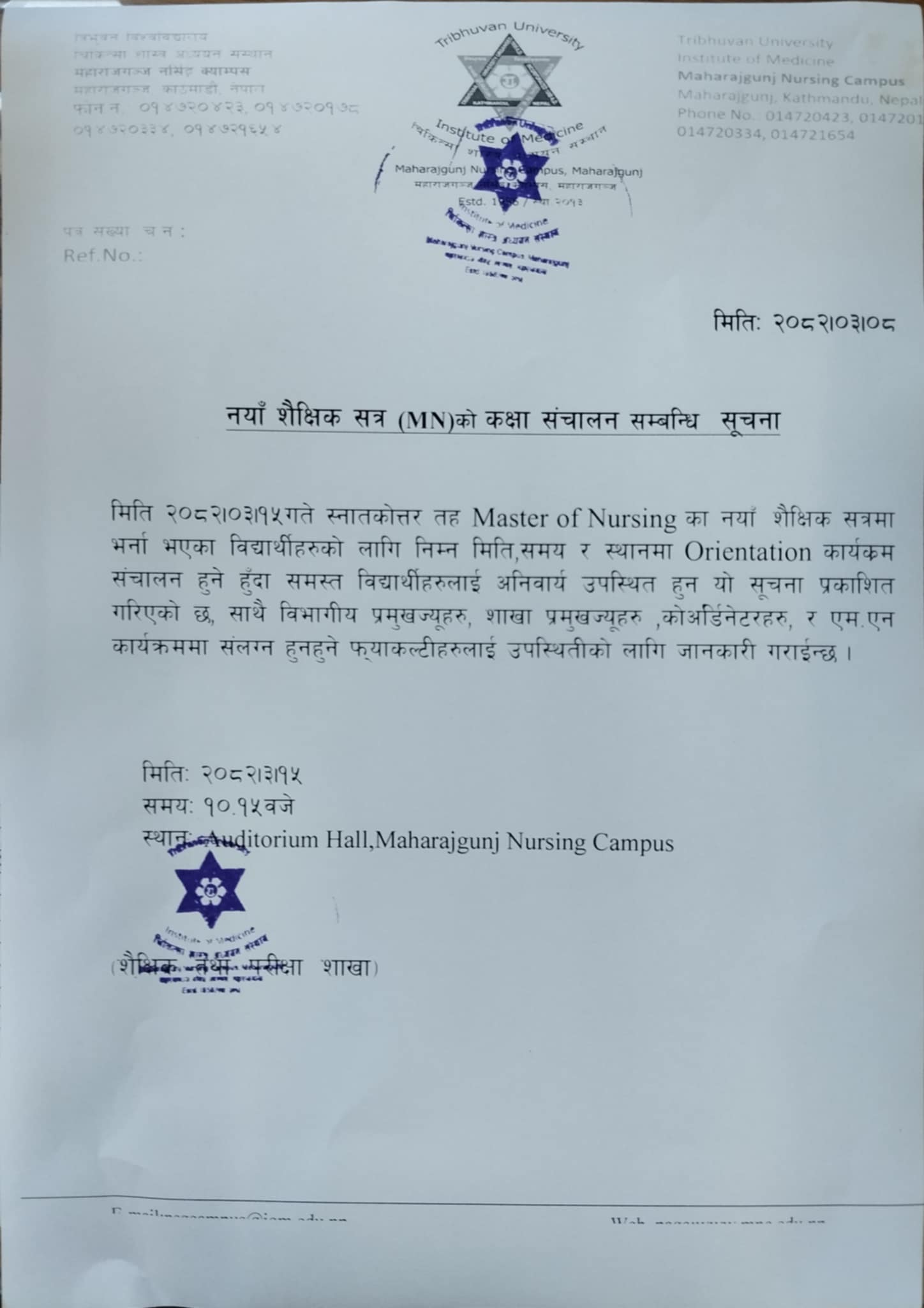 Notice of BNS, B.Sc. Nursing & B.Sc.M, Wrap-Up Matching MEC Seat Vacant Admission Notice 2082