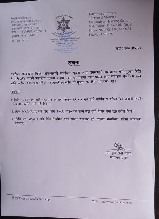 Notice to concerned Students and Faculties 2082