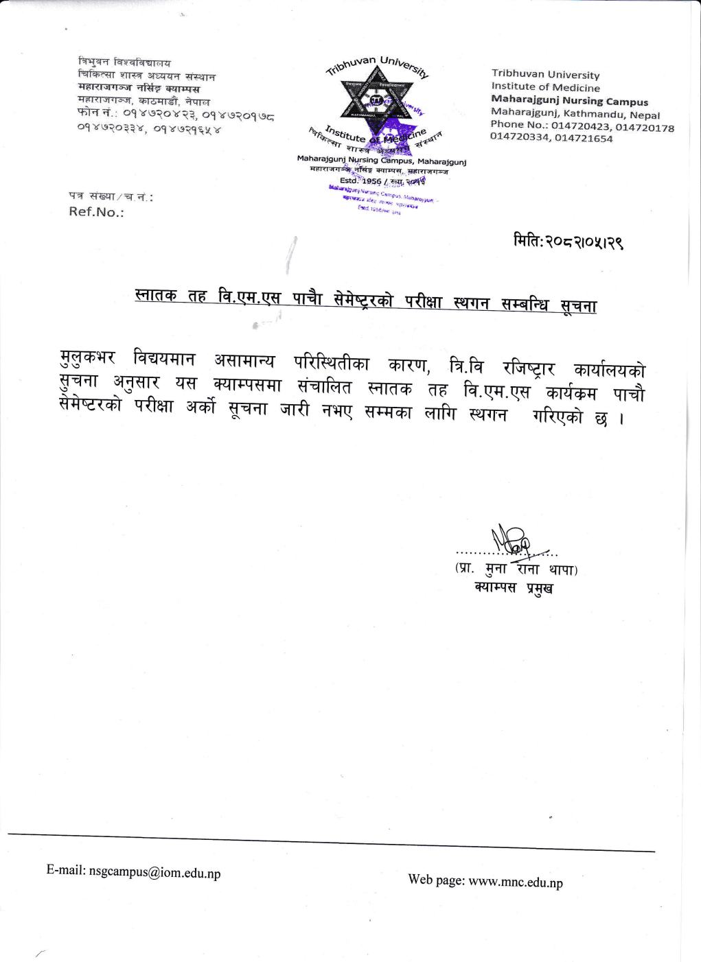 Notice regarding BMS 5th Semester Exam 2082