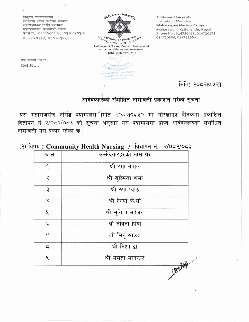 आवेदकहरुको सशोधित नामावली प्रकाशन गरेको सूचना २०८२