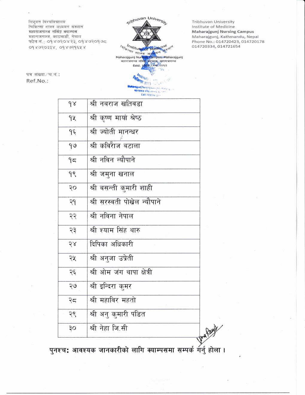 Notice of BNS, B.Sc. Nursing & B.Sc.M, Wrap-Up Matching MEC Seat Vacant Admission Notice 2082