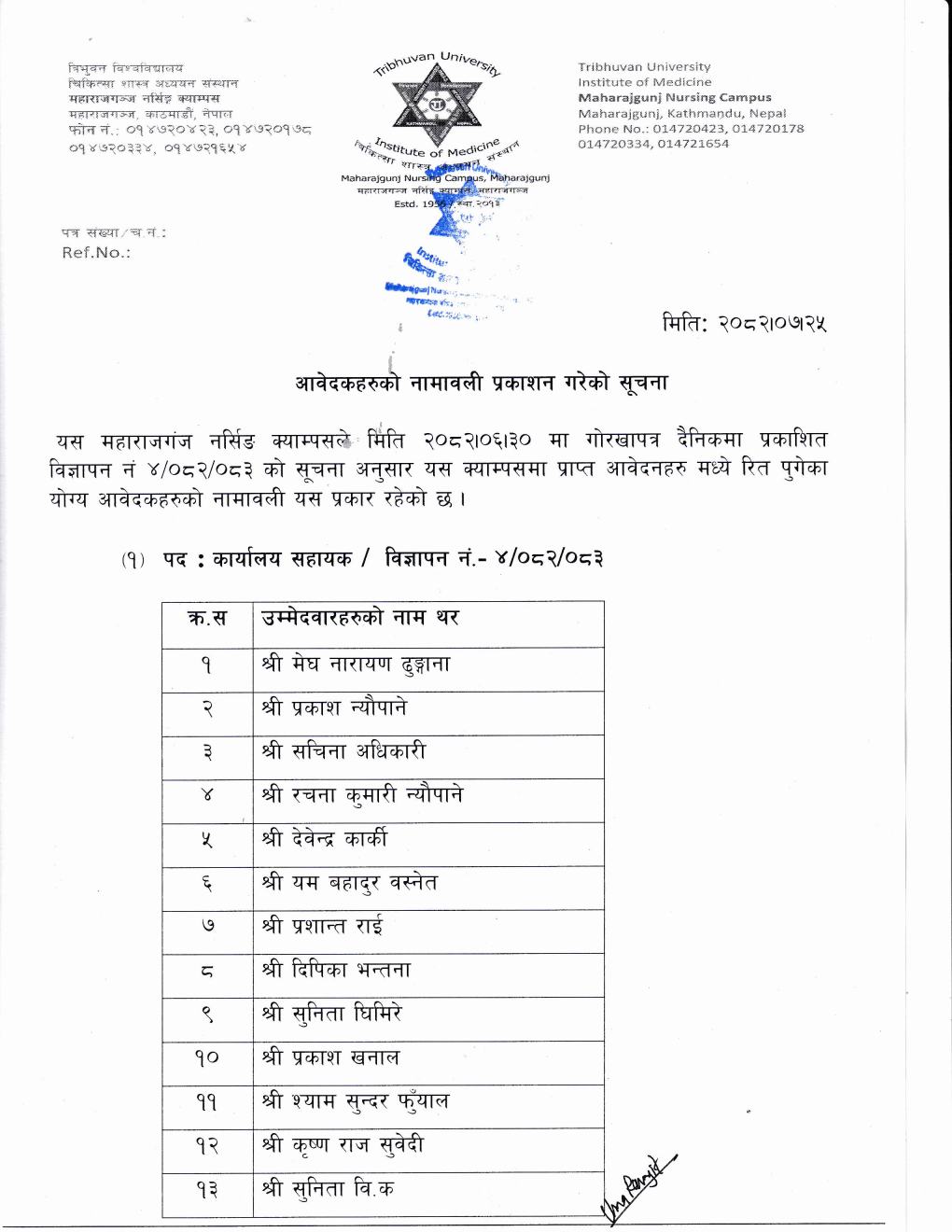 आवेदकहरुको नामावली प्रकाशन गरेको सूचना २०८२