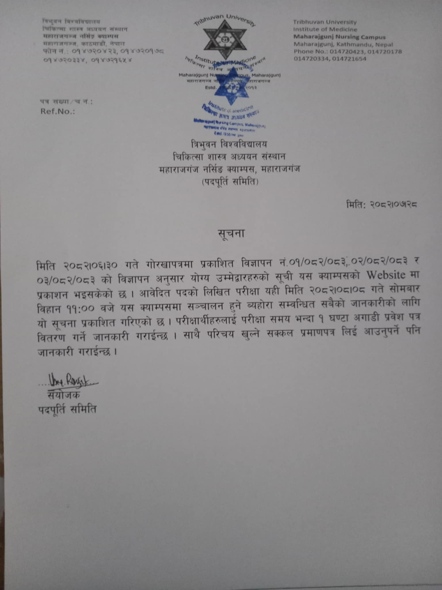 लिखित परीक्षा सम्बन्धि सूचना २०८२
